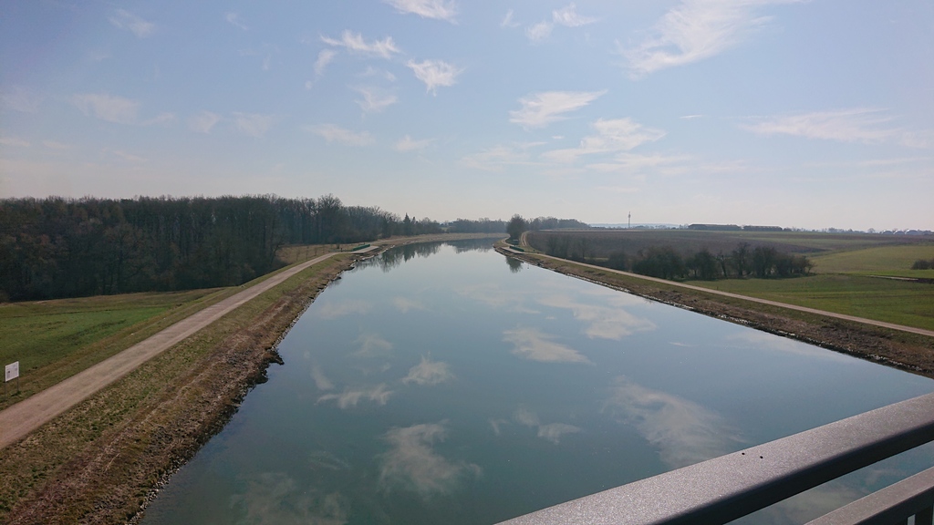 übernachten, 15km vor Ansbach. Bald schon überquere ich den Main-Donau-Kanal. Kein einziges Schiff heute zu