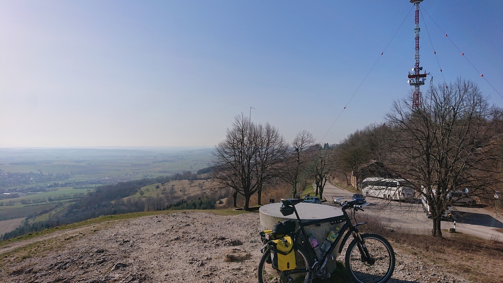 sonnig. Heute möchte ich in Nördlingen übernachten und auf dem Weg da hin den Hesselberg mitnehmen.
