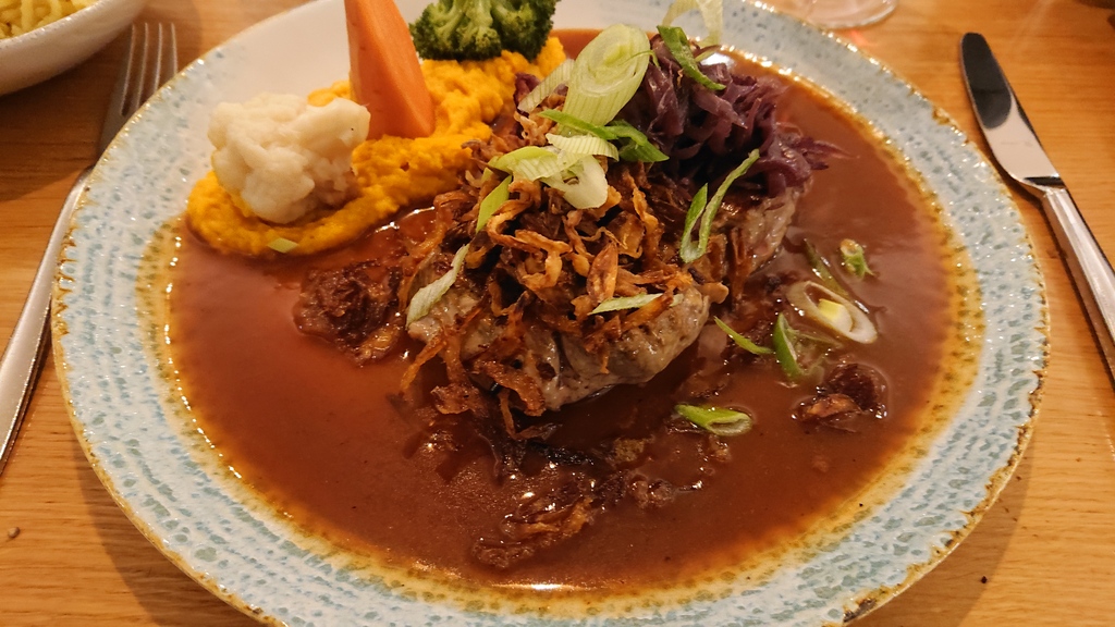 ich sehr zufrieden, der Zwiebelrostbraten ist ganz große Klasse!