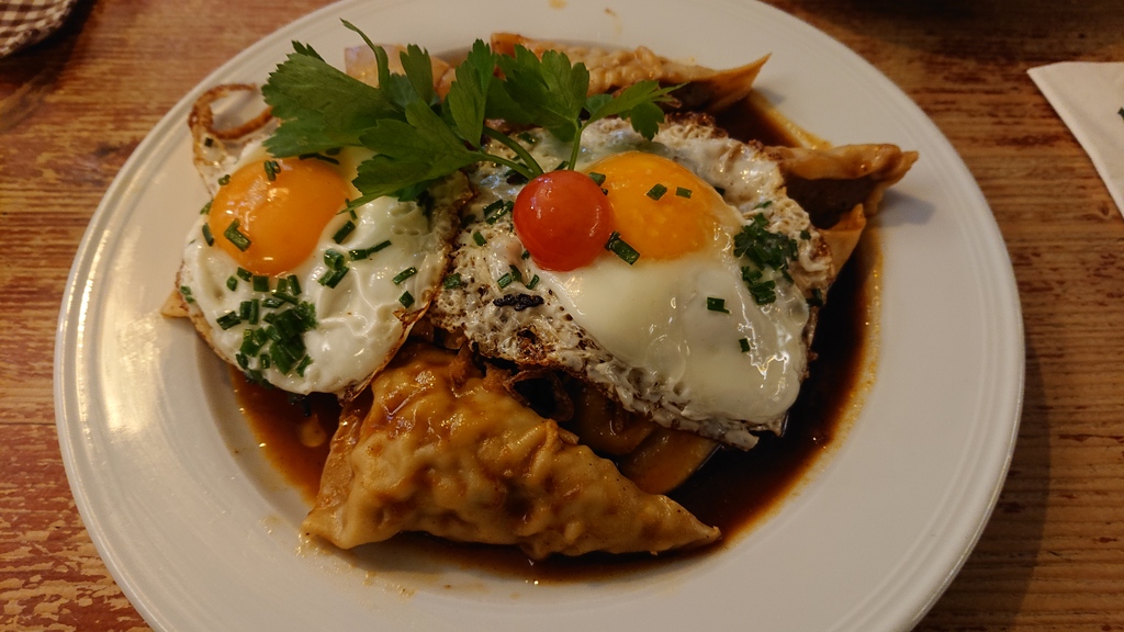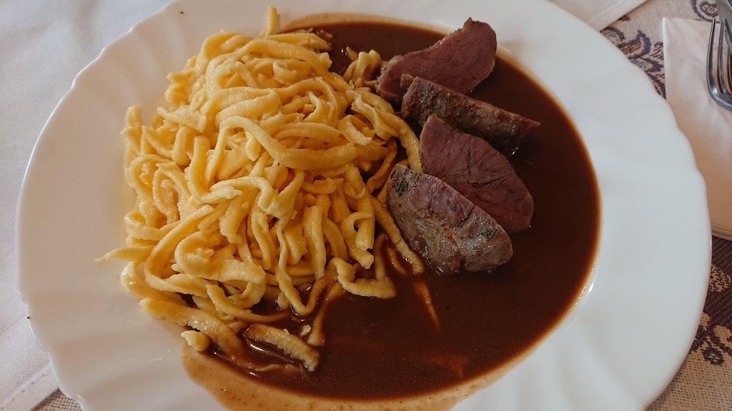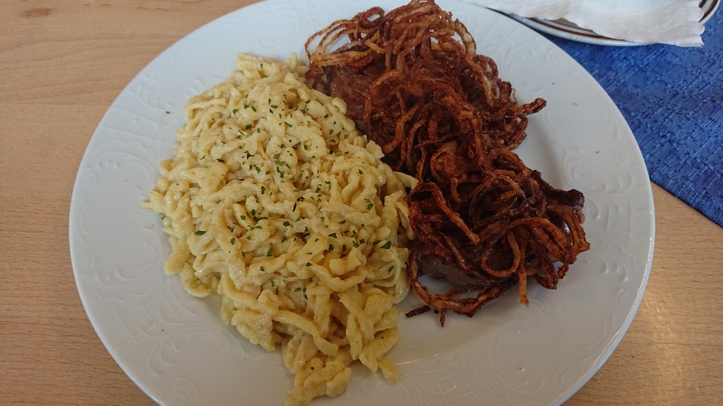 die Spätzle hat die "Krone" selbstgemacht. Auf mein "Lecker, hier kann man kochen" schallte es "Frau! Hier kann Frau