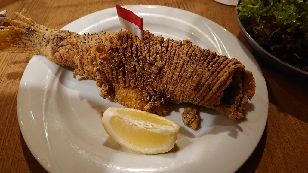 Heute probiere ich das Pfefferkarpfenfilet. Mit extraknuspriger Schwanzflosse und
